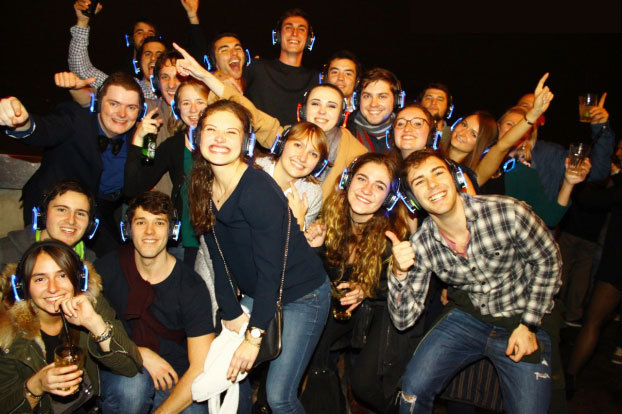 + unsere speziellen Silent Disco Kopfhörer, Modell NEON Lights BS Plus+
