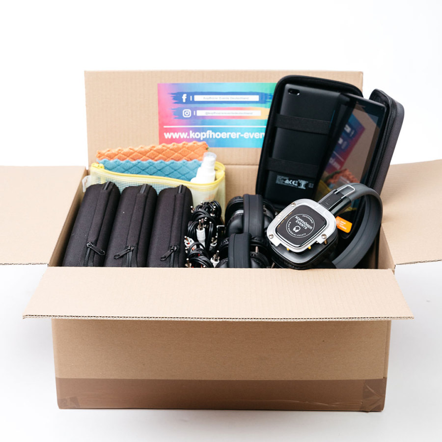 Eine Silent Disco Partybox beinhaltet: