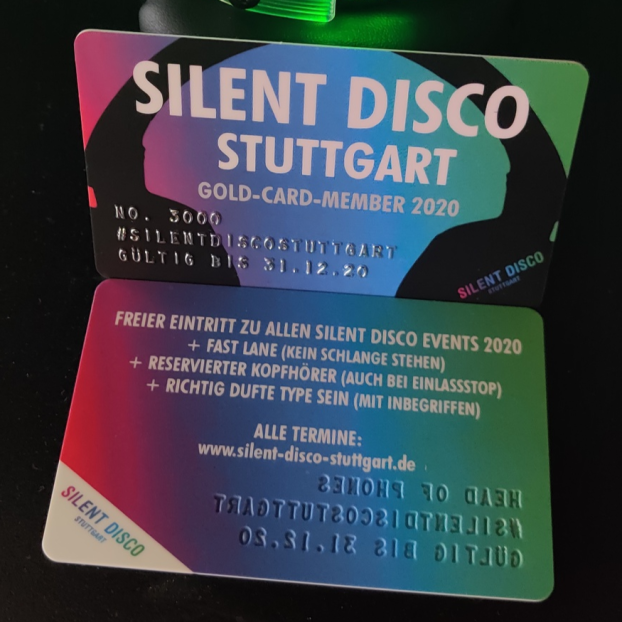 Die SILENT DISCO GOLD-CARD gilt für alle Veranstaltungen, die hier aufgeführt sind (auch Tübingen, Aalen, Esslingen etc.).